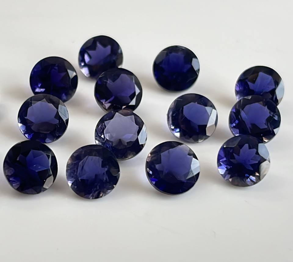 Coupe à facettes ronde en iolite naturelle 8mm-Coupe ronde en iolite lâche