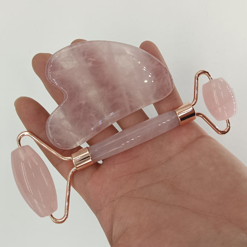 Rouleau de massage en jade naturel et pierre de gua sha en quartz rose