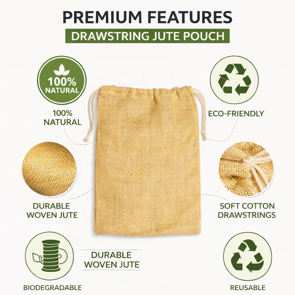 Sac en jute naturel biodégradable avec cordon de serrage, écologique, réutilisable, sac de rangement en toile de jute pour l'emballage des produits alimentaires, vente au détail et en gros
