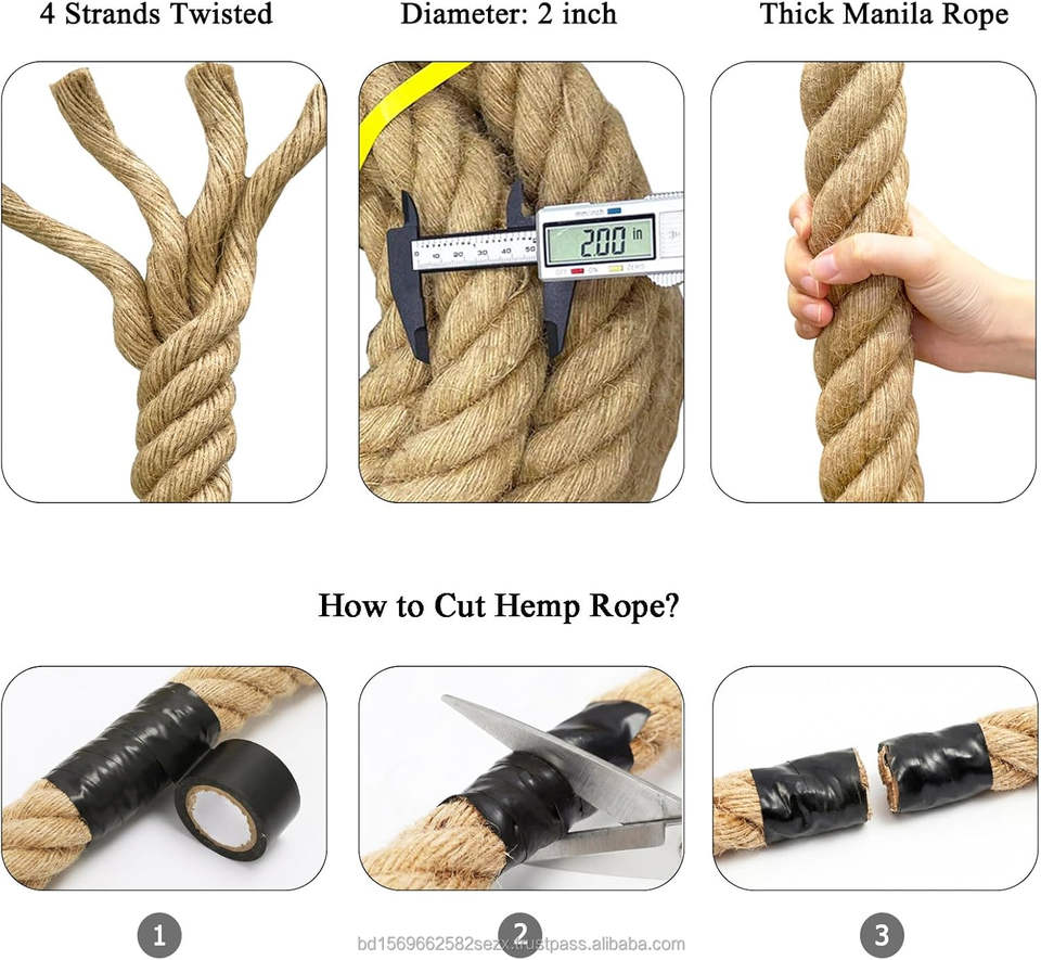 Product name:Natural Jute Rope Thick Hemp Rope (2 InchX100 Ft) Twisted