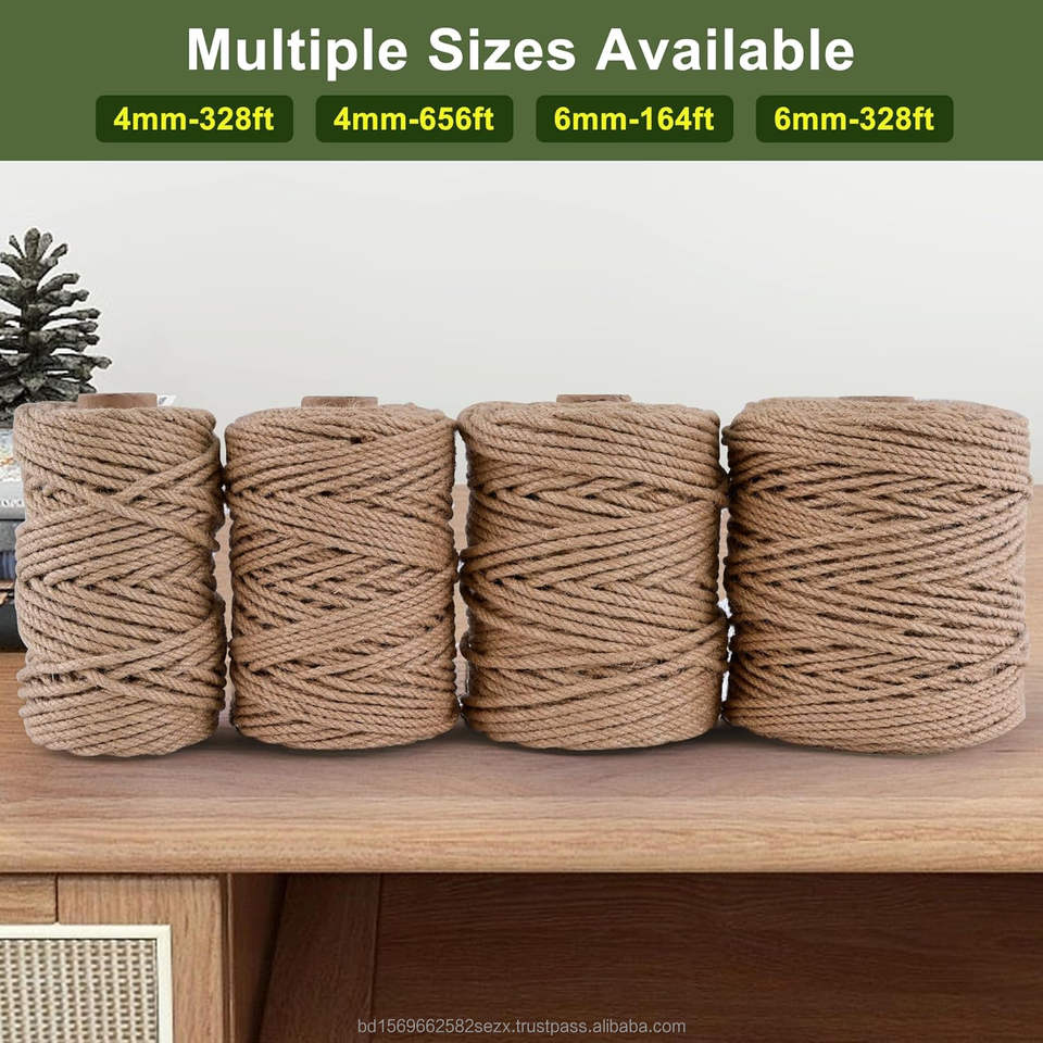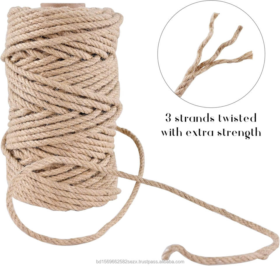Natural Jute Twine 328ft 4mm 3Ply Twisted Thick Rope Strong String Roll Made Bangladesh Crafts Gift Wrapping Gardening Home