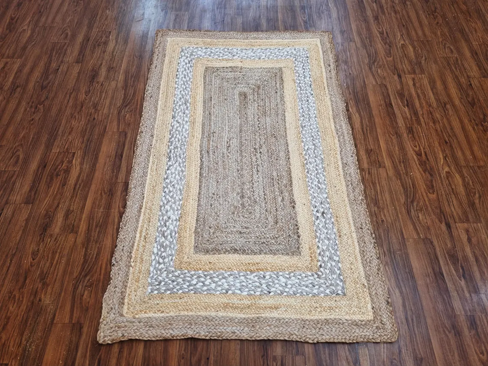 Tapis en jute Kilim naturel tressé à la main et touffeté avec motif abstrait à poils hauts pour salon chambre ou salle à manger