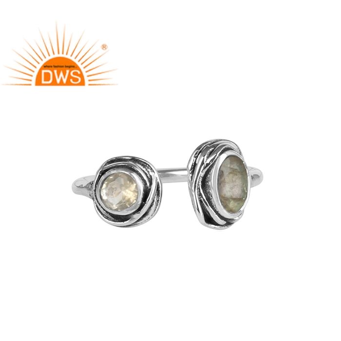 Bague ajustable en argent 925 Sterling, pierre précieuse, Labradorite naturelle et Quartz, bijou ajustable, fabrication