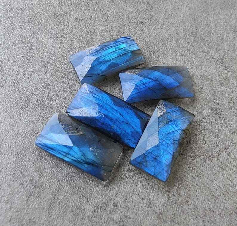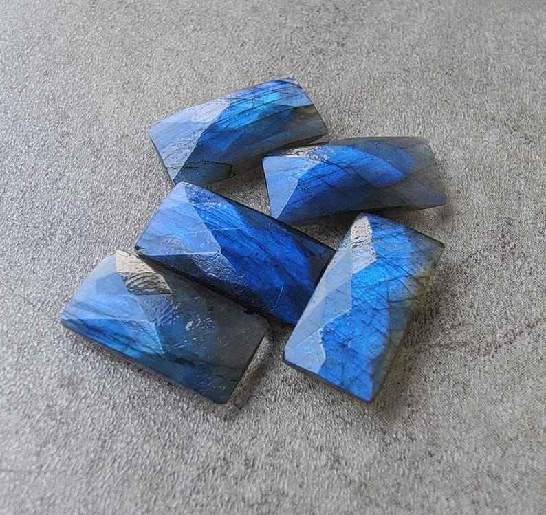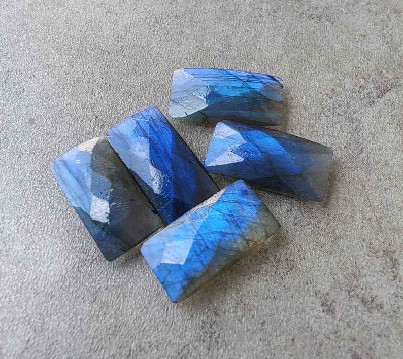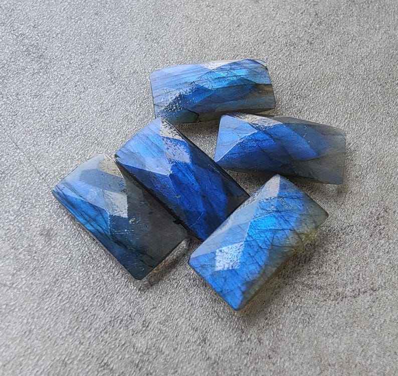 Pierre précieuse naturelle en labradorite, grande forme rectangulaire, taille briolette, coupe damier, calibrée, pour bijoux