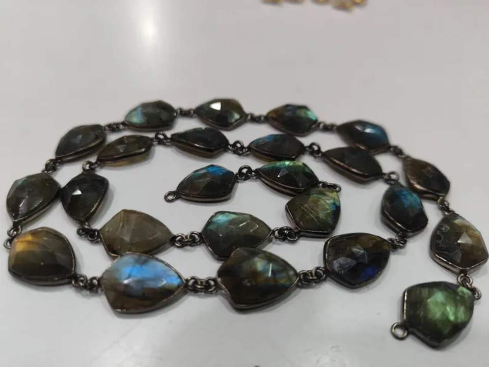 Labradorite naturelle briolette à facettes lunette connecteur chaîne 10-15mm forme fantaisie laiton matériel pour la fabrication de bijoux vendu par pied