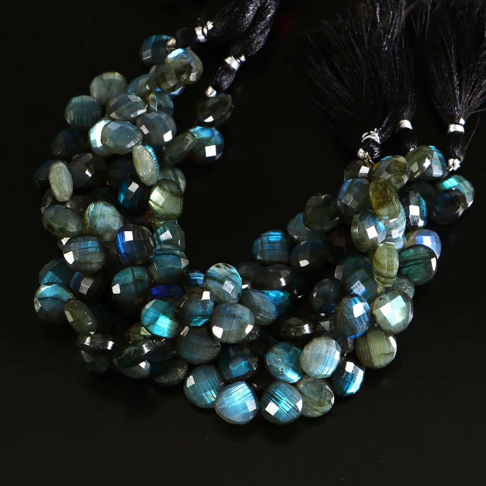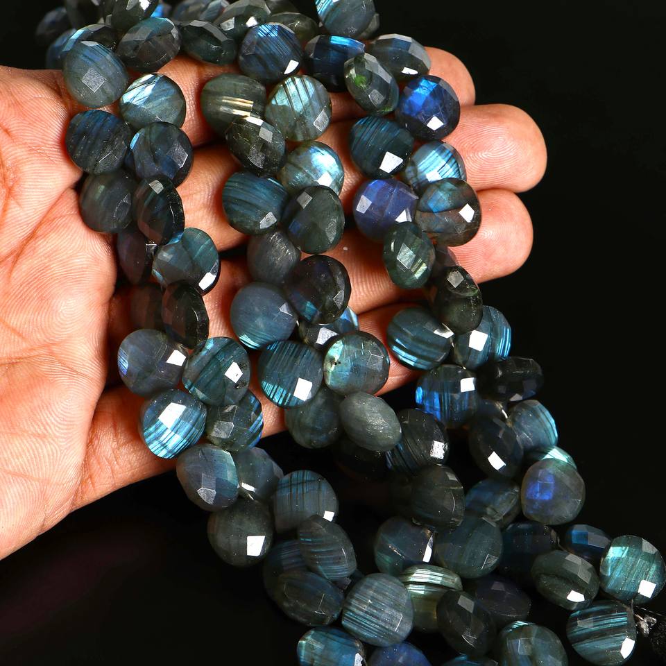 Perles de labradorite naturelle facettées en forme de cœur 11-12 mm, éclat bleu, perles de pierres précieuses de labradorite naturelle pour la fabrication de bijoux, 8 pouces