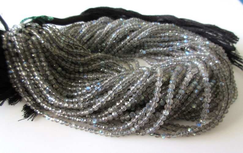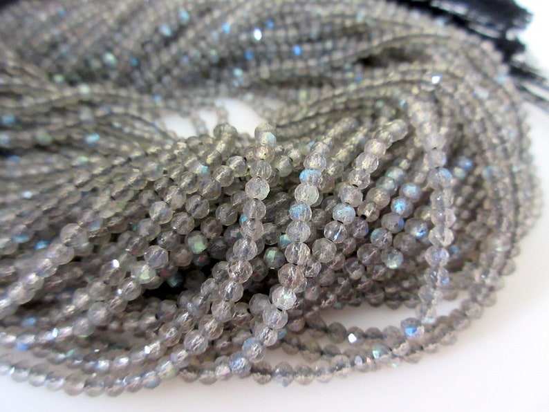 Perles de labradorite, pierre gemme naturelle, d'une belle couleur grise idéale.