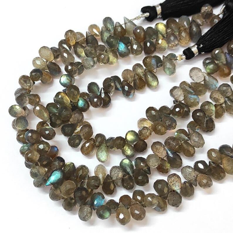 Perles en forme de larme à facettes en Labradorite naturelle 5x8-6x10mm Perles en pierre de Labradorite pour la fabrication de bijoux par un fournisseur en gros