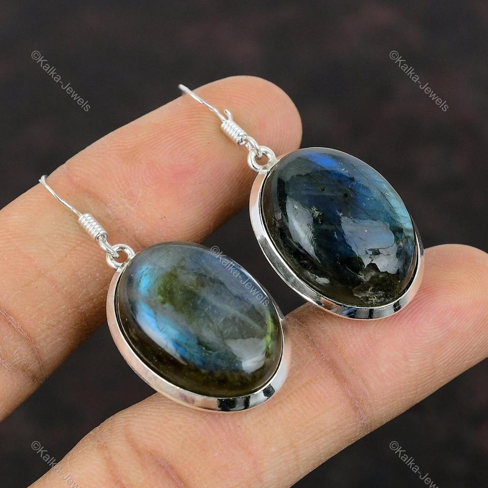 Boucles d'oreilles en argent sterling 925 avec pierres précieuses en labradorite naturelle pour femmes-Cadeau unique fait main-Bijoux