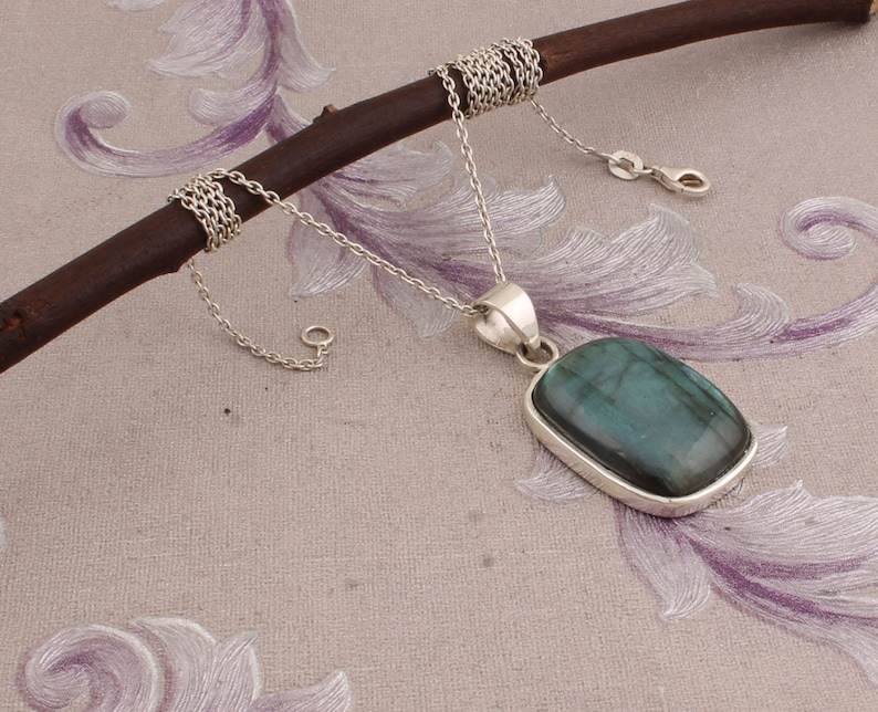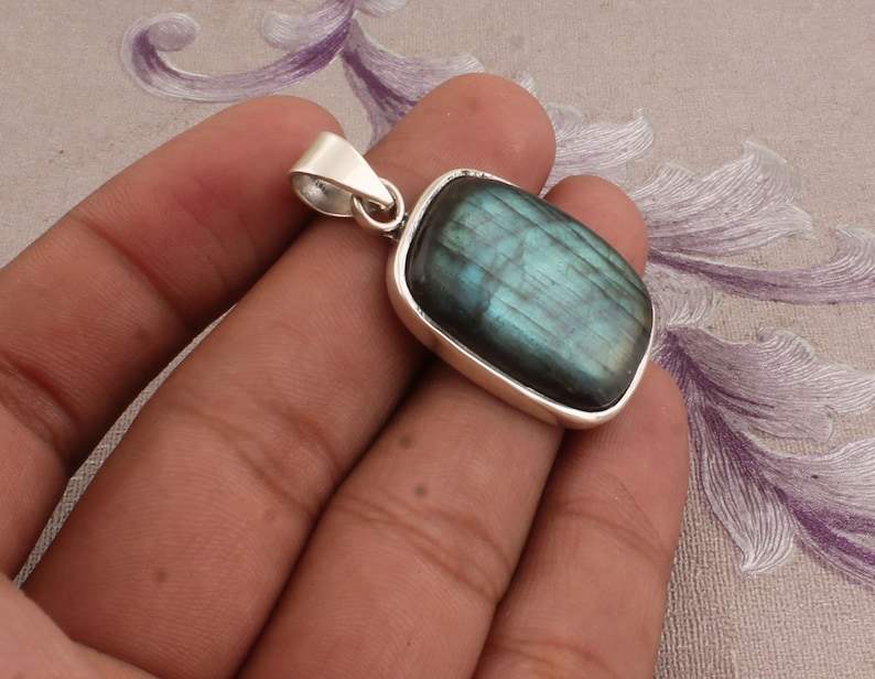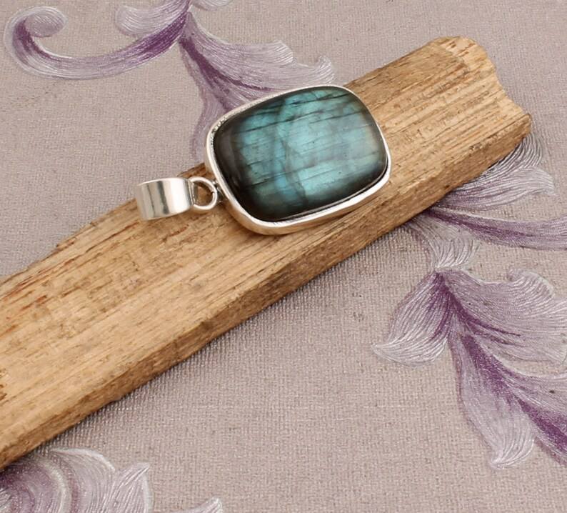 Pendentif en pierre précieuse de labradorite naturelle fait à la main en argent sterling collier de feu bleu bijoux fins pour les femmes