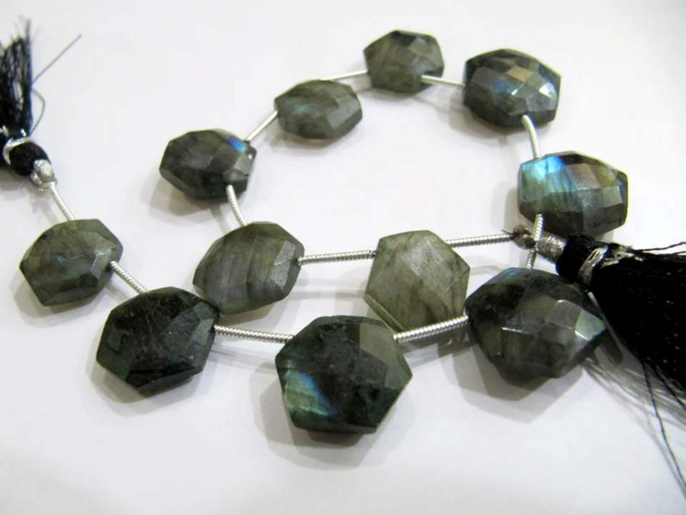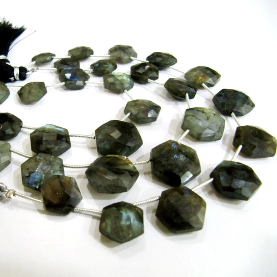 Perles de Labradorite Naturelle de Haute Qualité, Forme Hexagonale, Facettées, Briolette, 12-15 mm, Brins de Pierres, 8 Pouces de Long, EMINENT JEWEL