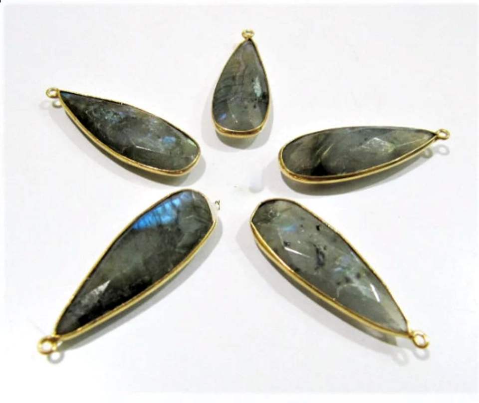 Labradorite naturelle longue forme de poire 10x28 à 12x30mm connecteurs briolette pierre grise breloques à boucle unique