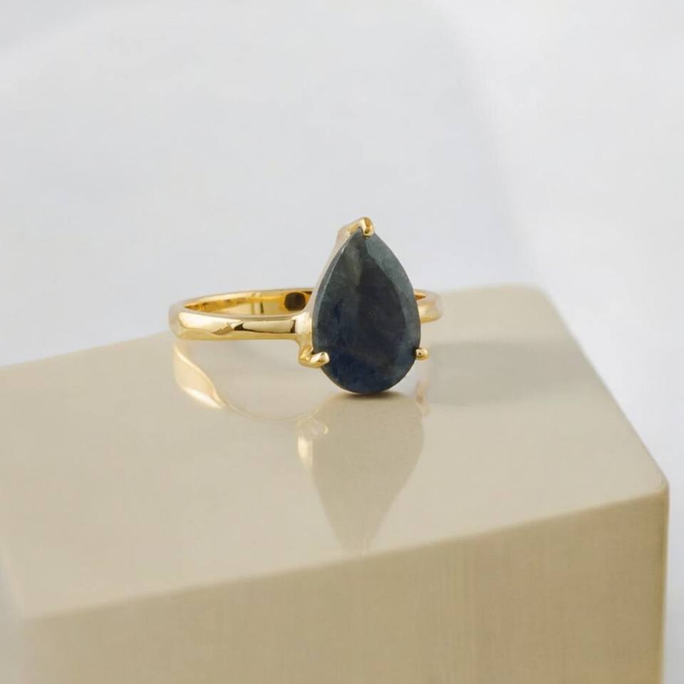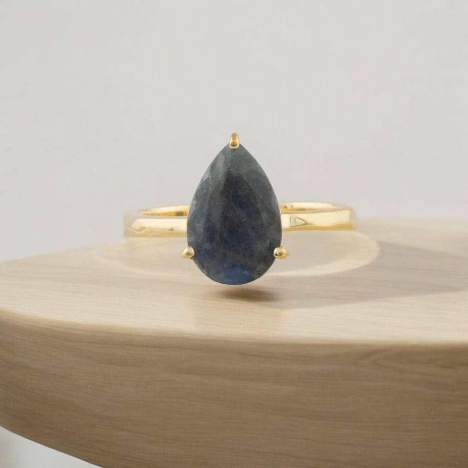 Bague en argent sterling 925 plaqué or avec labradorite naturelle taille poire sertie clos, faite à la main, pierre précieuse éclatante, bijou de déclaration