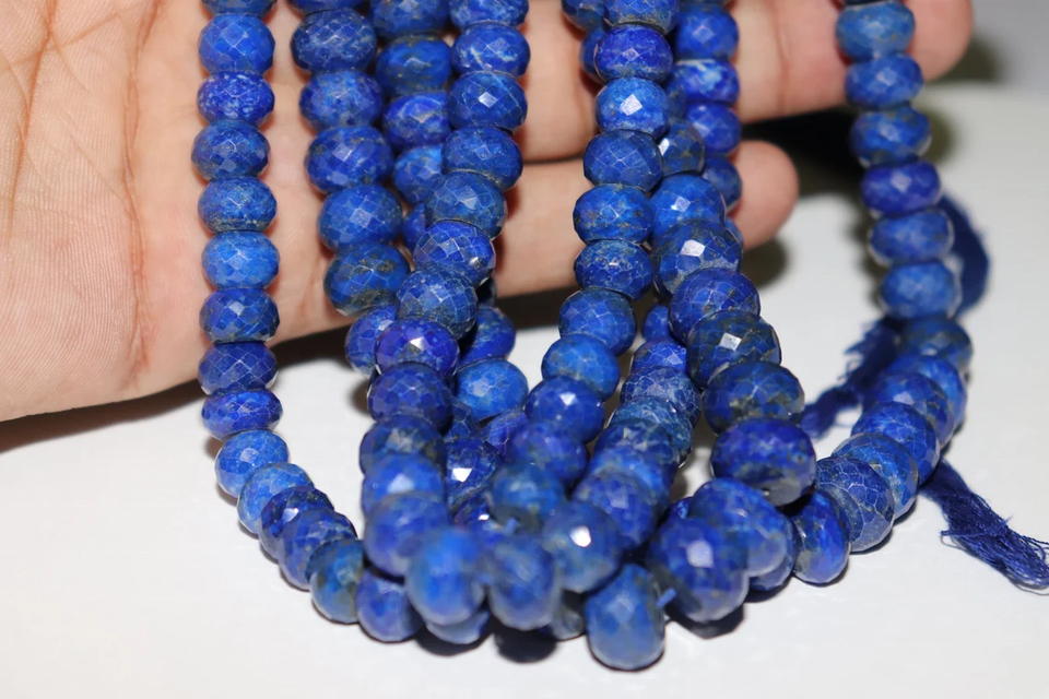 Lapis naturel à facettes rondelle pierres précieuses naturelles 9-11mm brins 16 pouces pour la fabrication de bijoux