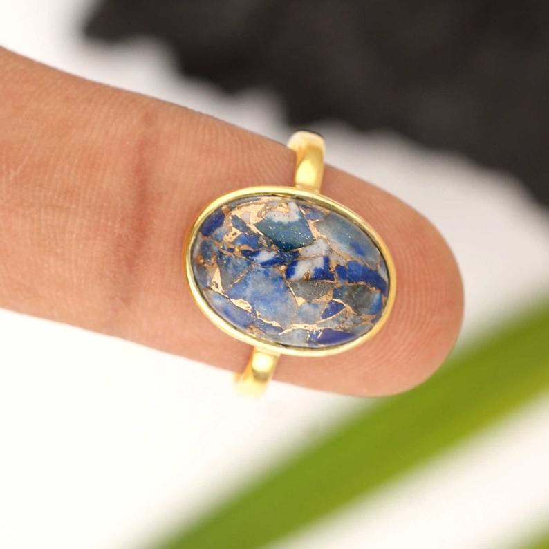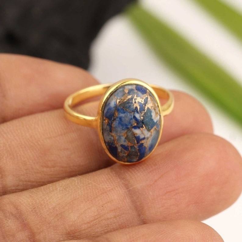 Nom du produit:Bague d'empilage en argent sterling plaqué or Lapis Lazuli naturel en cuivre