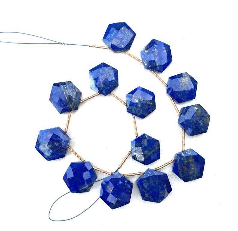 Pierre précieuse Lapis Lazuli naturelle 1 brin à facettes forme hexagonale pierres semi-précieuses perles de Briolette fabrication de bijoux DIY