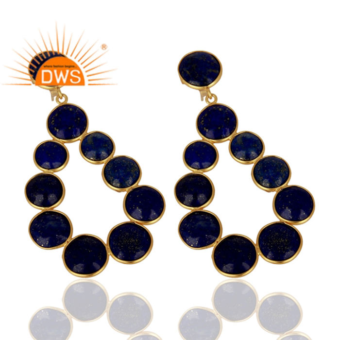 Lapis-boucle d'oreille en pierre précieuse Lapis-Lazuli naturelle, forme goutte, plaqué or, argent Sterling, vente en gros, possibilité de vente en gros