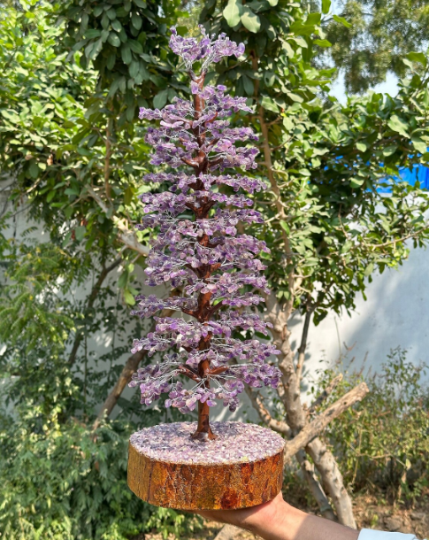 Grand arbre de Noël de pierres précieuses en cristal d'améthyste naturel pour décorations de maison et de jardin
