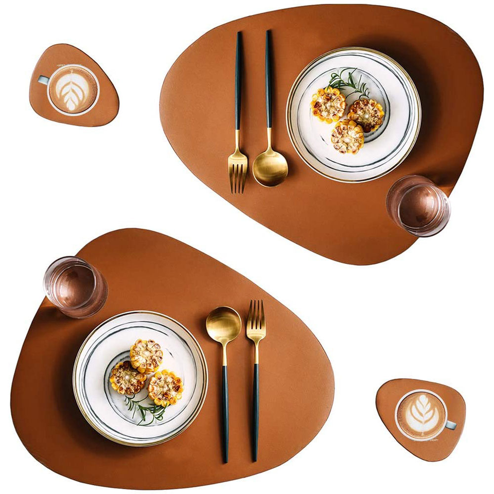 Tapis de table à manger en cuir naturel Napperons de restaurant Tapis de table à isolation thermique personnalisé pour salle à manger avec produit de vente