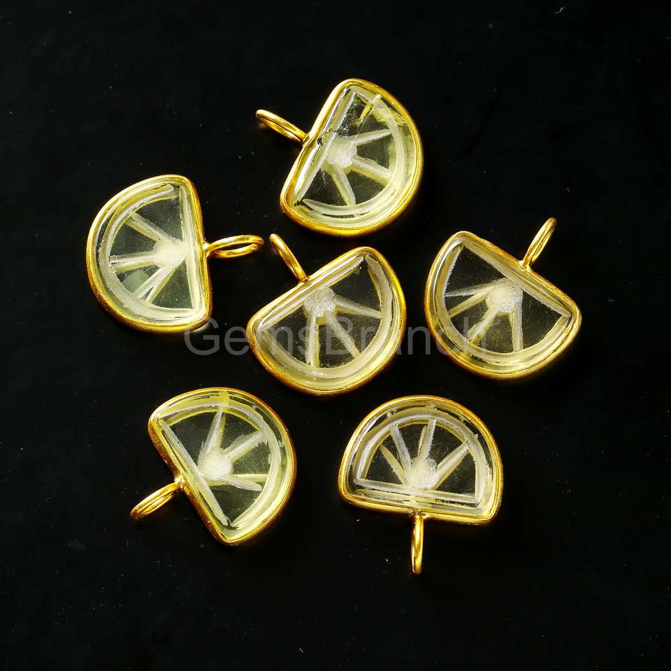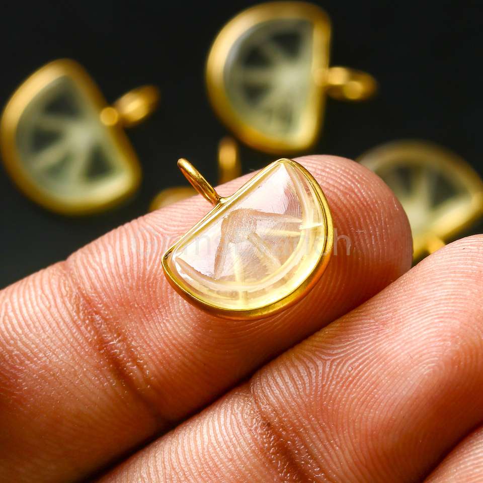Charmes en quartz citron naturel sculptés en forme de fruit orange, pendentif en argent sterling 925 plaqué or vermeil, pierre précieuse en quartz, bijoux de guérison en cristal