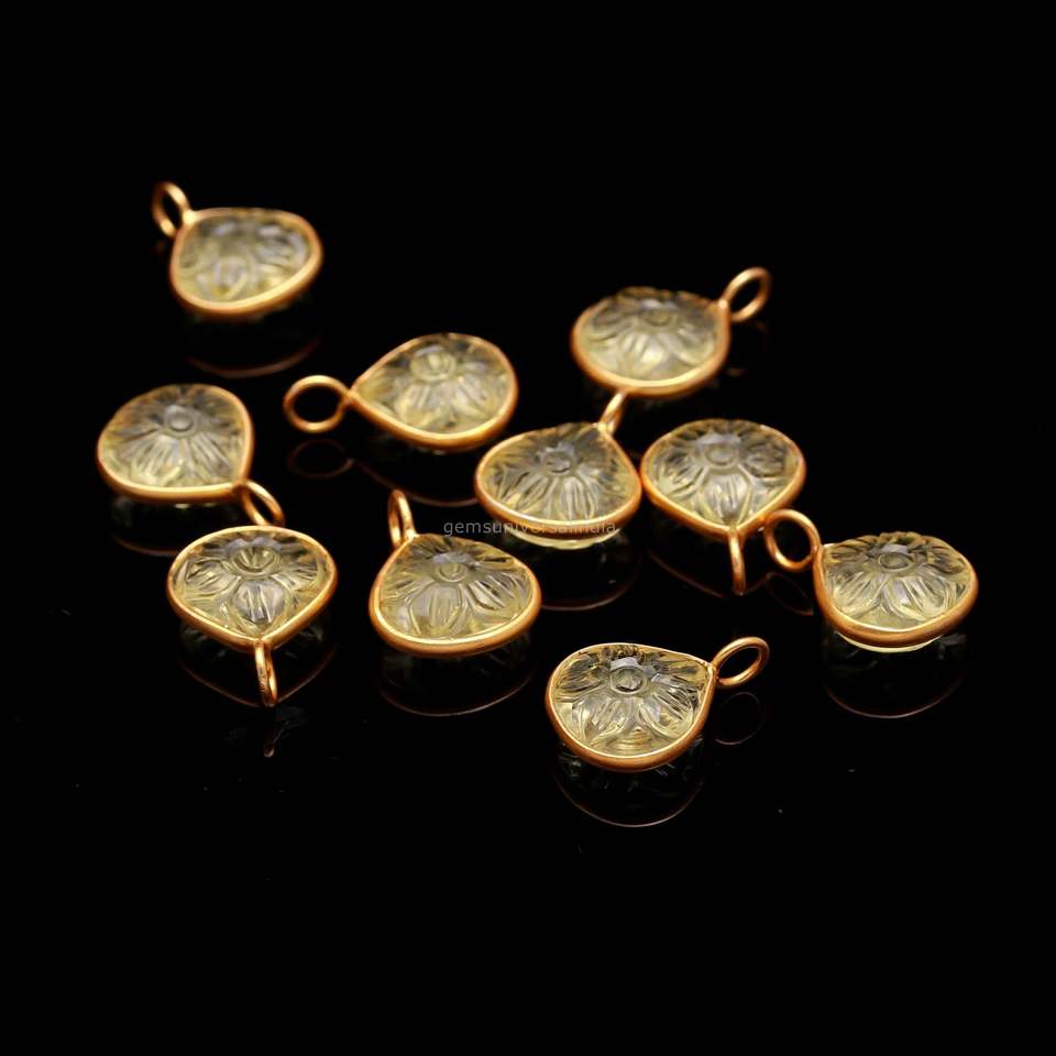 Pendentif en pierre de quartz citron naturel sculpté à la main, charme en pierre de quartz citron en argent sterling 925 pour la création de bijoux, 12 mm