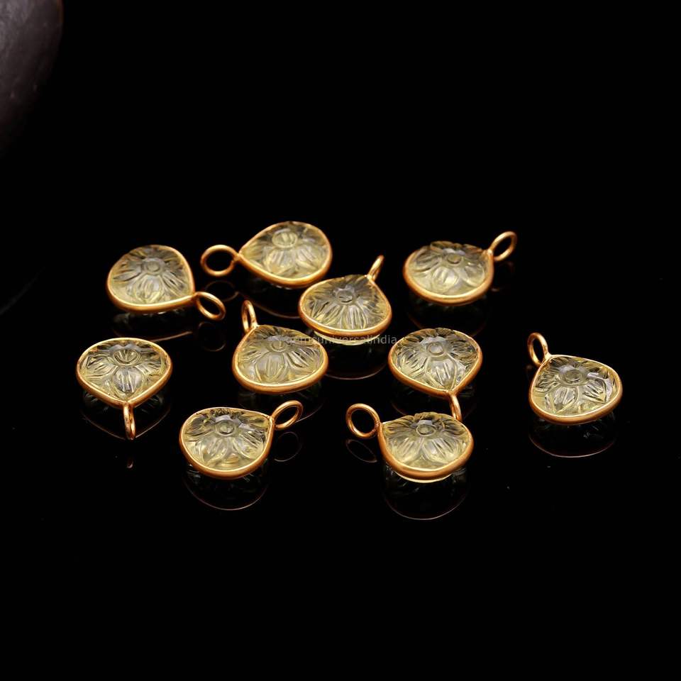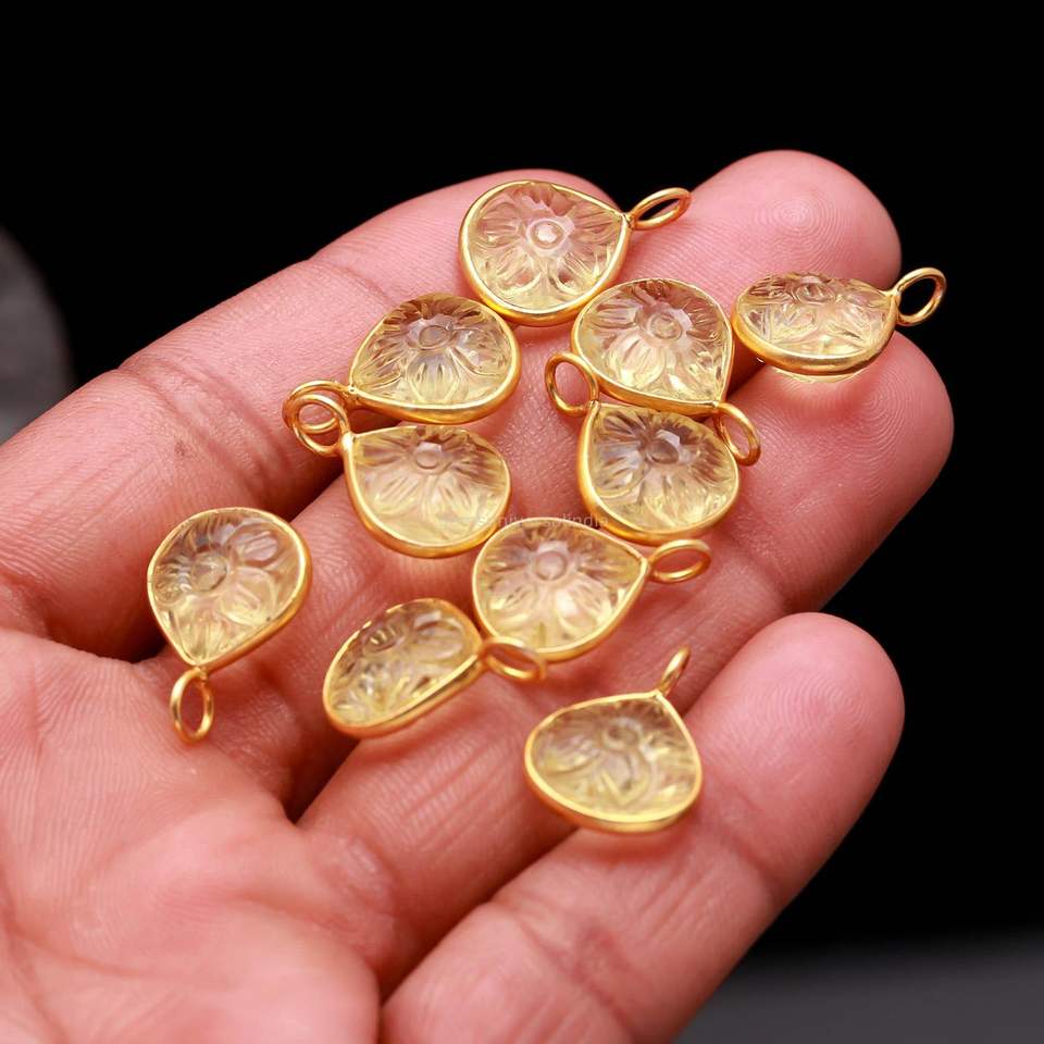 Nom de la pierre précieuse:Breloques en pierre gemme sculptée en forme de fleur, quartz citron naturel