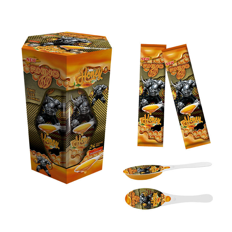 Cuillère en acier dur à long manche naturel pour miel, emballages et boîte de présentation