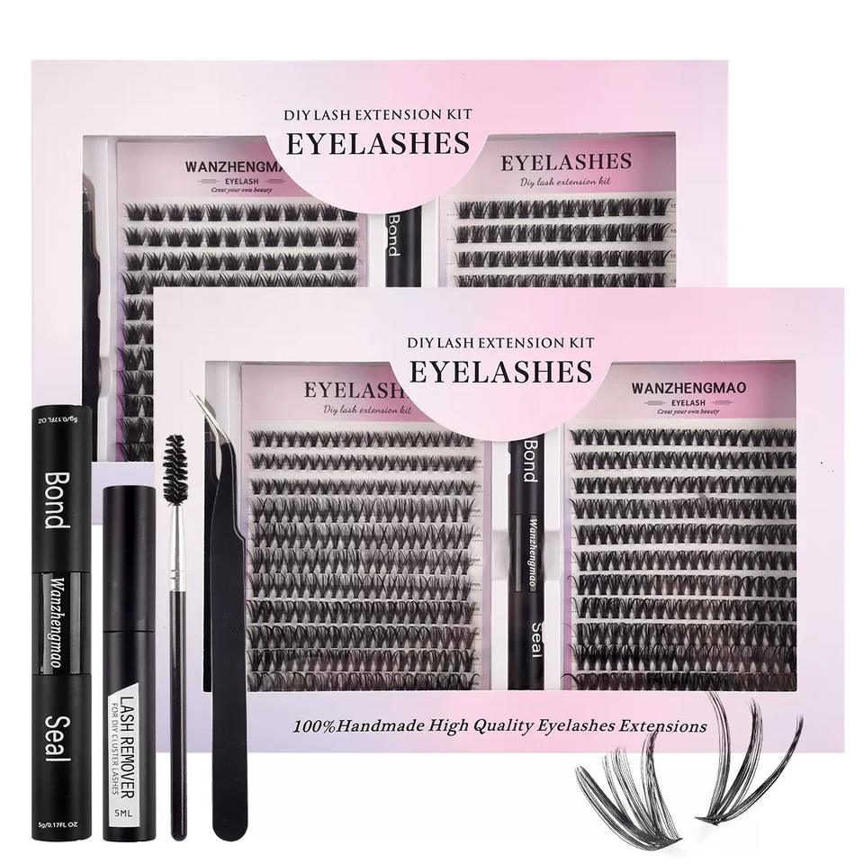 Extensions de cils naturels longs en faux vison mat, à faire soi-même, avec design segmenté en bouquets individuels, sans cruauté, emballage personnalisé avec logo