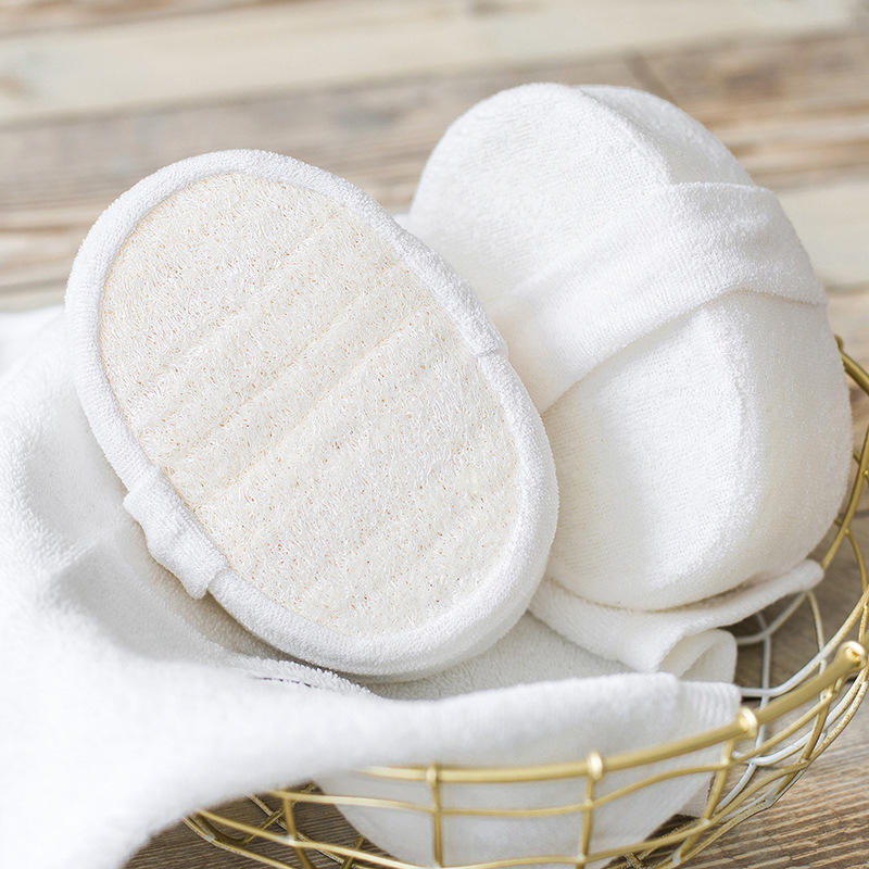 Éponge de bain naturelle en loofah, douce, pour le corps, avec brosse de massage intégrée