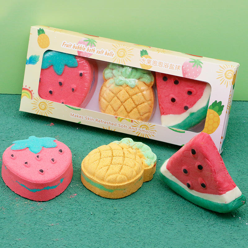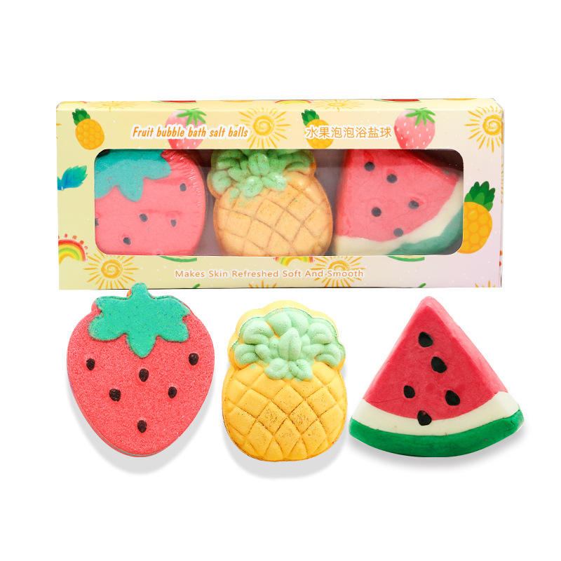 Bombes de bain artisanales de luxe naturelles aux fruits, huiles essentielles, cadeau de Noël, heure de bain éducative et amusante, formes de fruits mignonnes, effervescentes