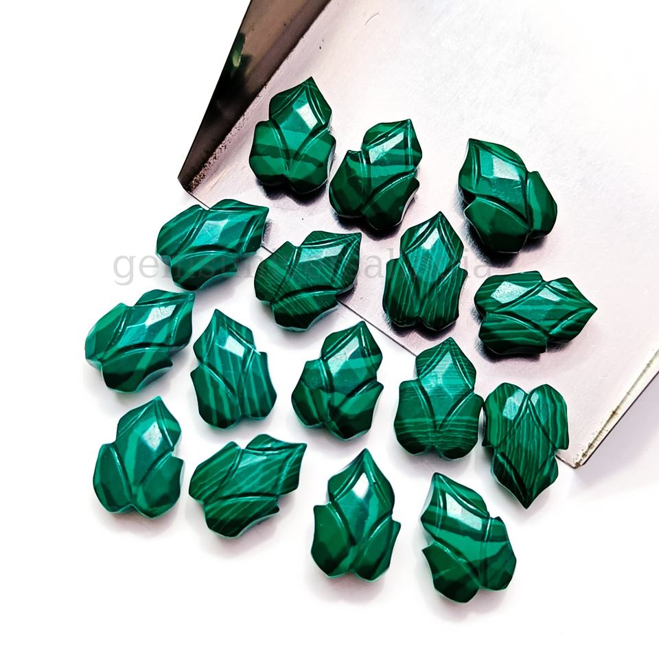 Forme naturelle de feuille de malachite sculptée pierre précieuse à facettes