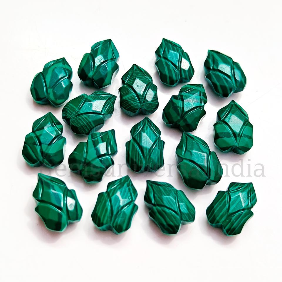 Malachite naturelle sculptée à la main en forme de feuille sculpture malachite cristal perles de pierres précieuses pour la fabrication de bijoux à partir de grossiste indien en vrac