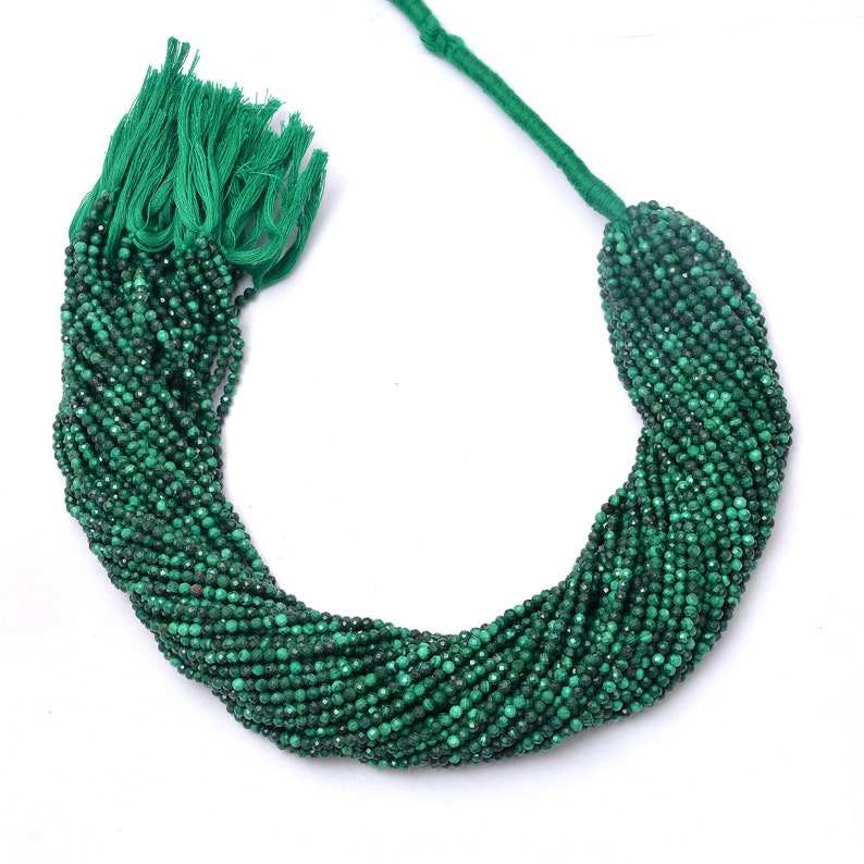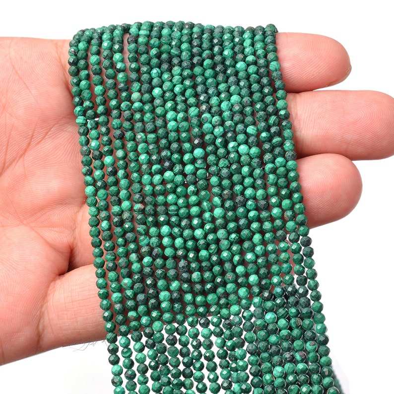 Micro perles à facettes en malachite naturelle, brins de 3mm, perles de pierre de malachite pour la fabrication de bijoux, cordes de pierres précieuses en vrac