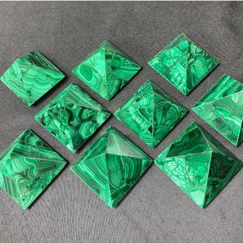 Pyramide de malachite naturelle, cristal de malachite verte rayée, pierre de guérison pour la méditation Reiki, décoration énergétique, vente en gros