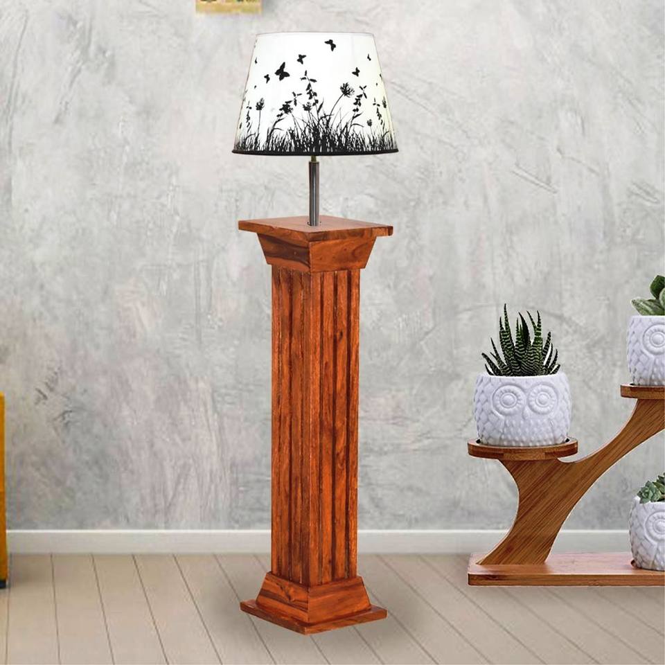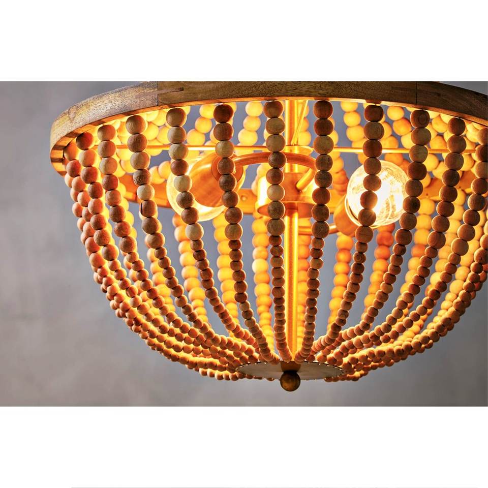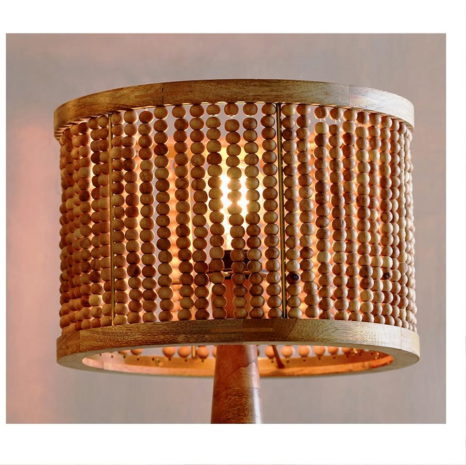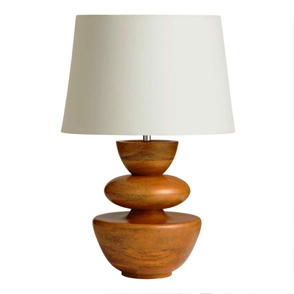 Eco-Friendly Natural Mango Wood Art Deco Flower Shape Stacked Geo Table & Pendant Lamp
