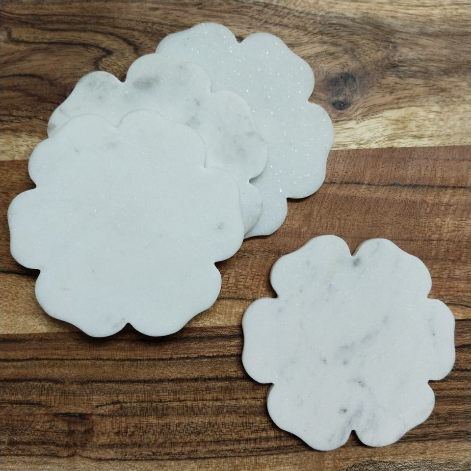Sous-verre en marbre naturel forme de fleur antidérapant blanc Sublimation accessoires floral boisson pierre sous-verre pour café vin servant