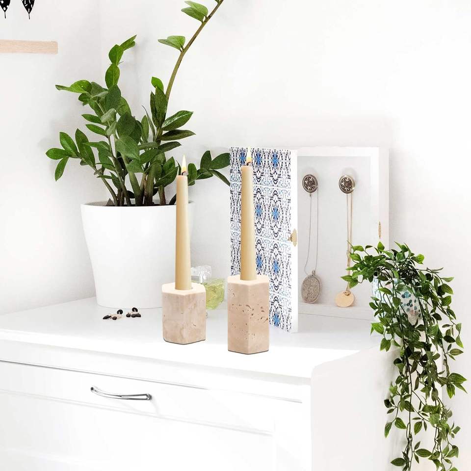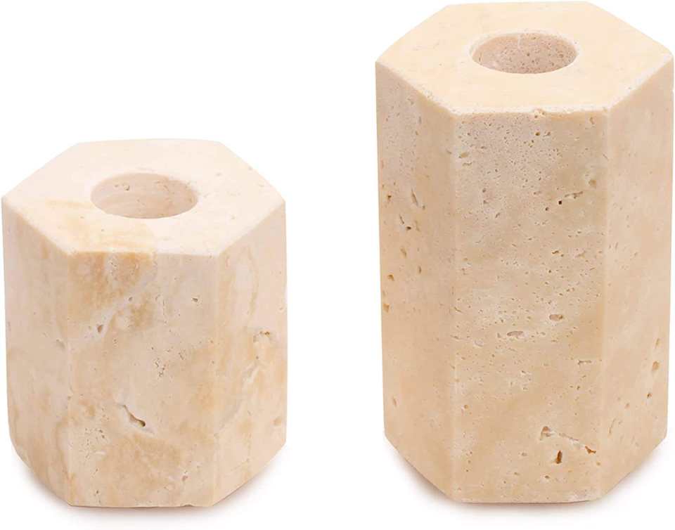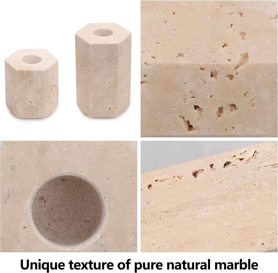 Porte-bougie hexagonal en marbre naturel, support à bougie en marbre crème de qualité supérieure pour la décoration de la maison, table à manger, mariage