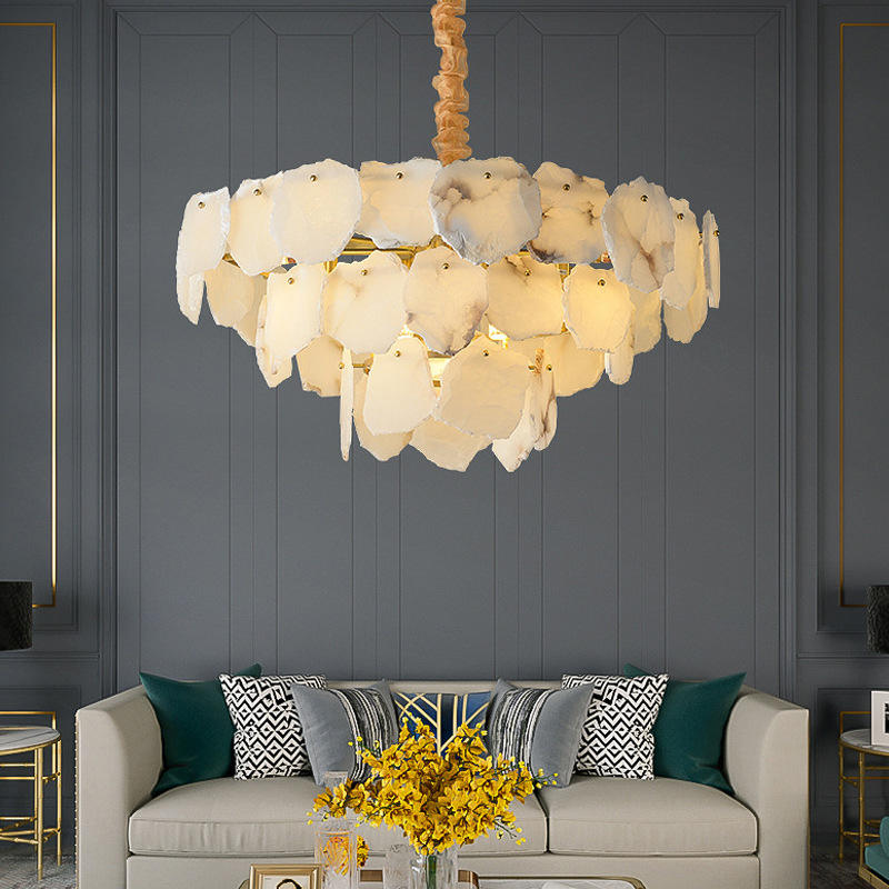 Lampes suspendues en marbre naturel de luxe avec LED dorées, lustre, éclairage suspendu, luminaire pour salon, lampes de plafond