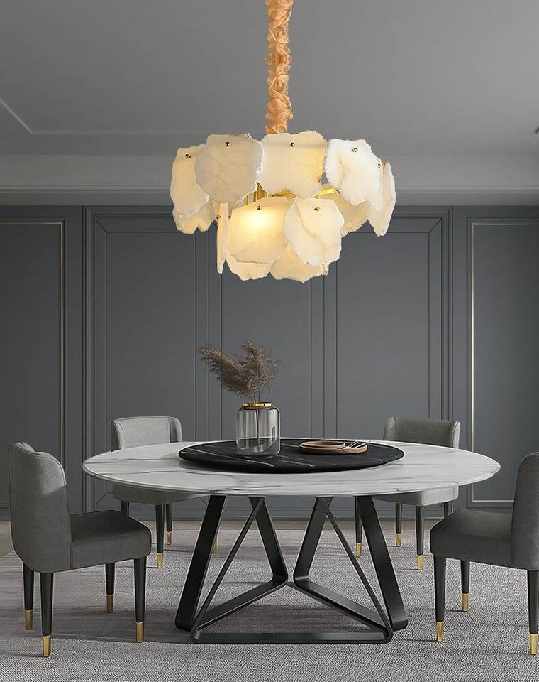 Lustre suspendu de luxe en marbre naturel avec LED et détails dorés