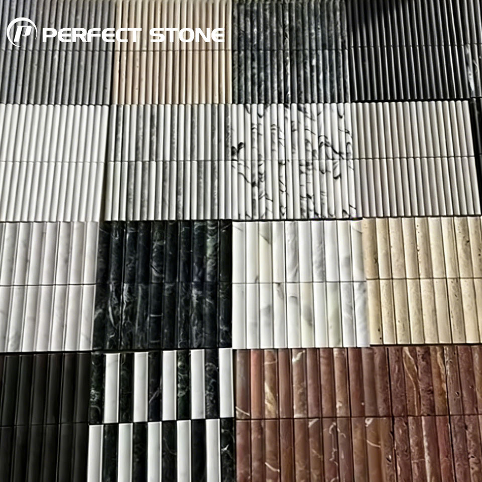 Revêtement mural moderne en marbre naturel, mosaïque concave cannelée, carrelage en marbre travertin pour la décoration murale, salle de bain, cuisine