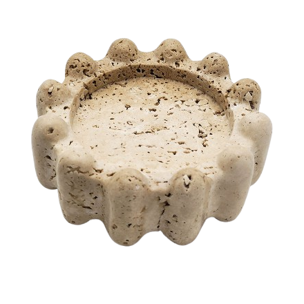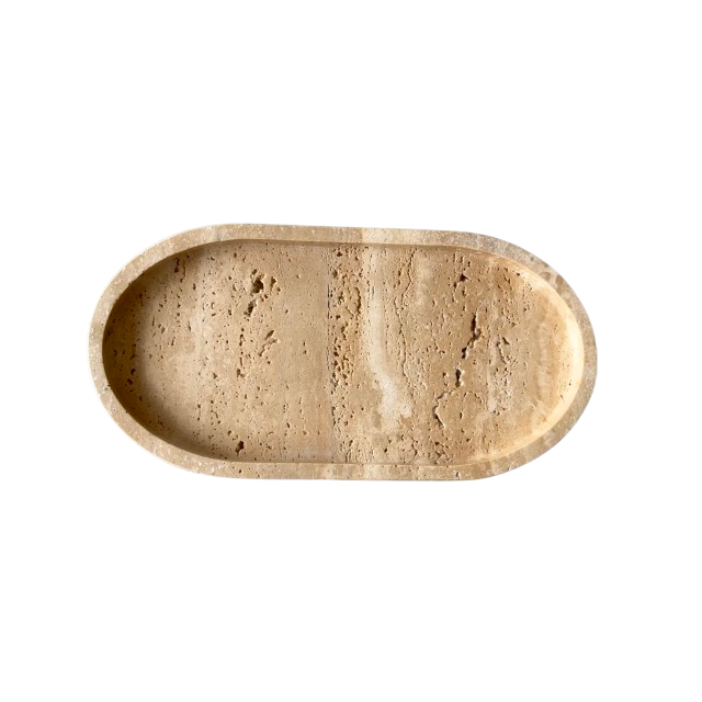 Plateau de rangement rond en travertin naturel Art Déco pour fruits, desserts, gâteaux avec logo personnalisé - Multifonctionnel pour cuisine et salle de bain
