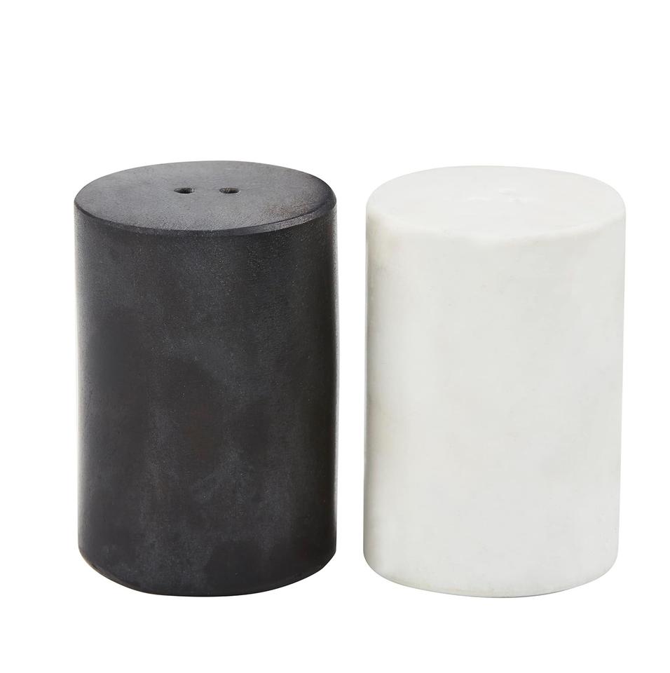 Ensemble de salière et poivrière en marbre naturel élégant fabriqué à la main Base en bois Distributeur d'épices en pierre cylindrique pour outils d'épices aux herbes