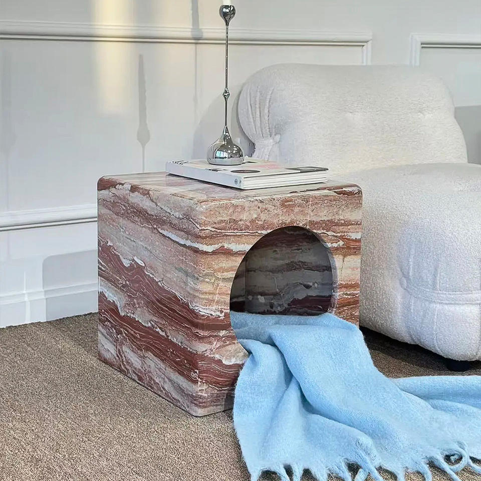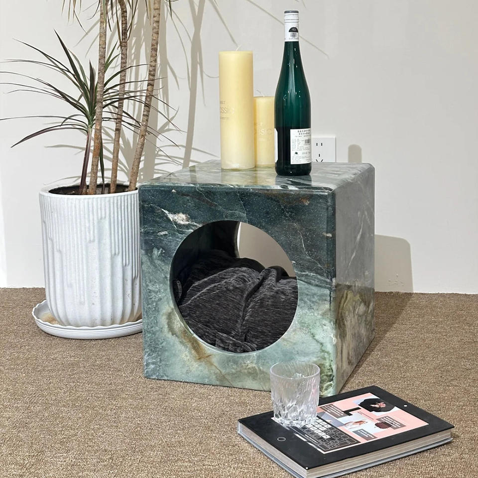 Table d'appoint en marbre naturel 2-en-1, niche pour chat, lit pour animaux de compagnie, luxe, imperméable, décoration d'intérieur, meubles pour chambre à coucher/salon
