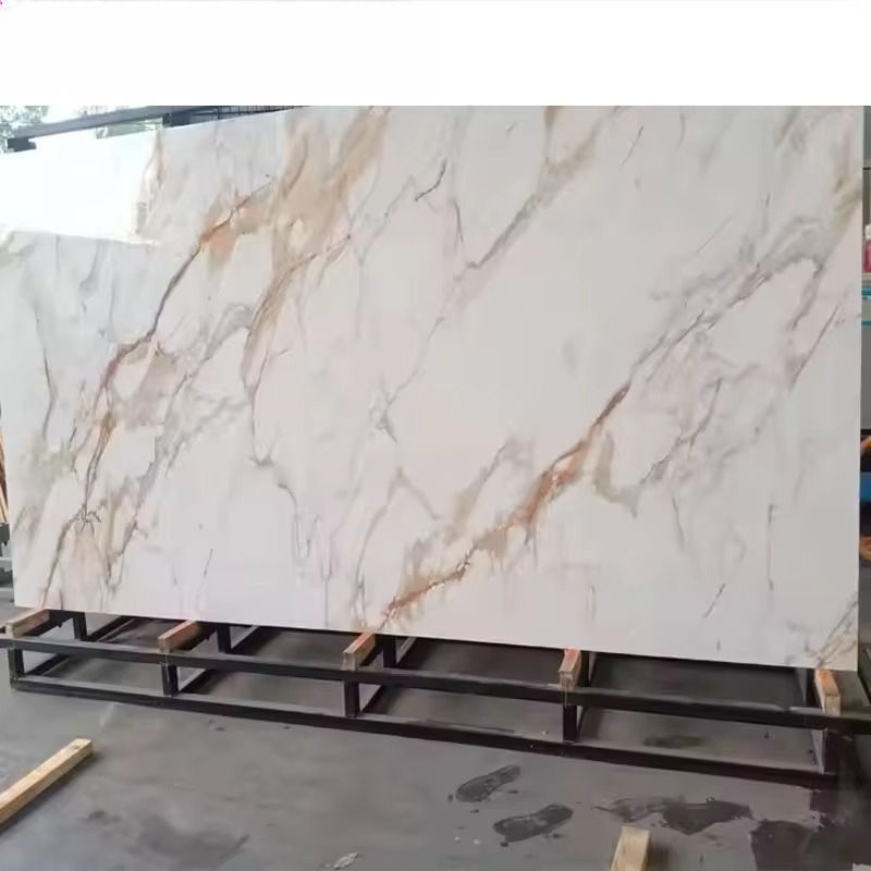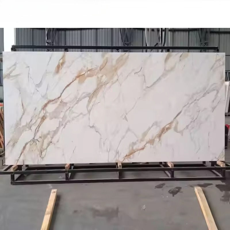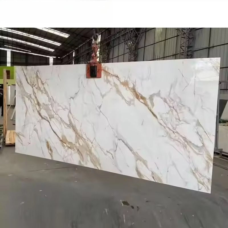 Texture de marbre naturel Lamina Marbre artificiel Pierre de sol Ciment Marbre Calacatta Or Panneau mural Wpc Pierre frittée