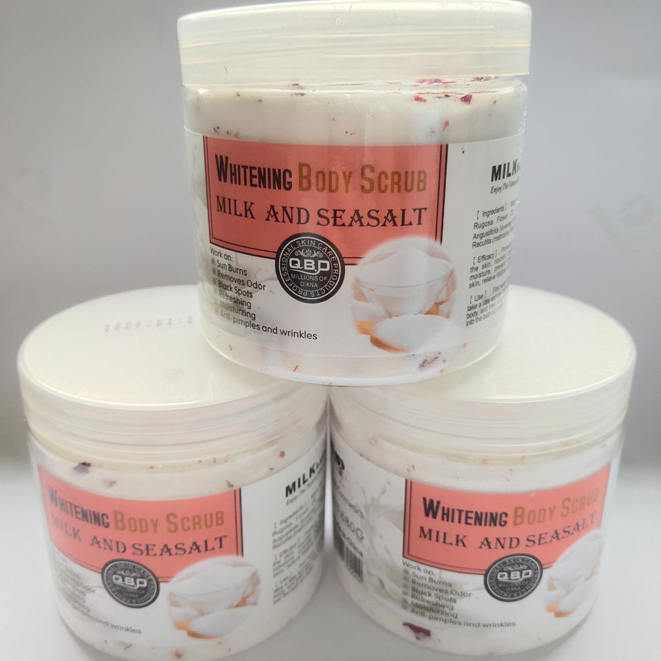 Gommage corporel au sucre de lait naturel, exfoliant, sel d'Epsom, sel de bain blanchissant SPA avec logo gratuit