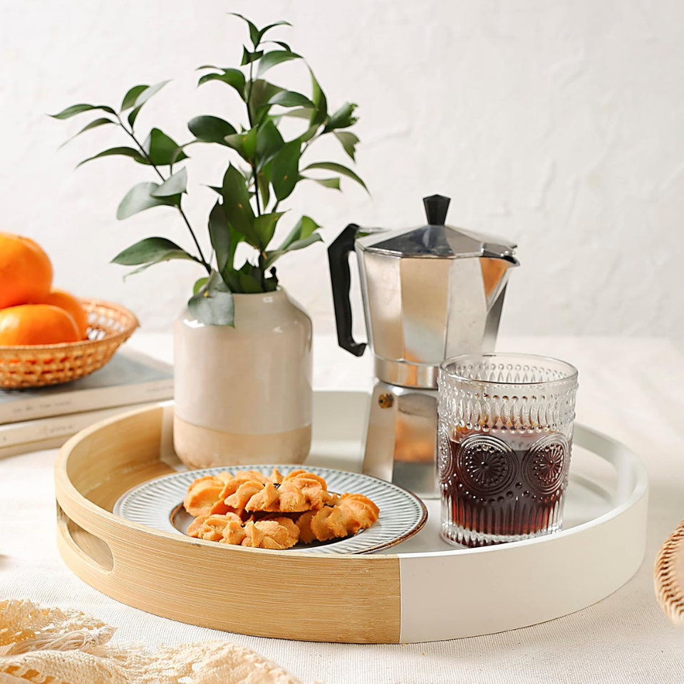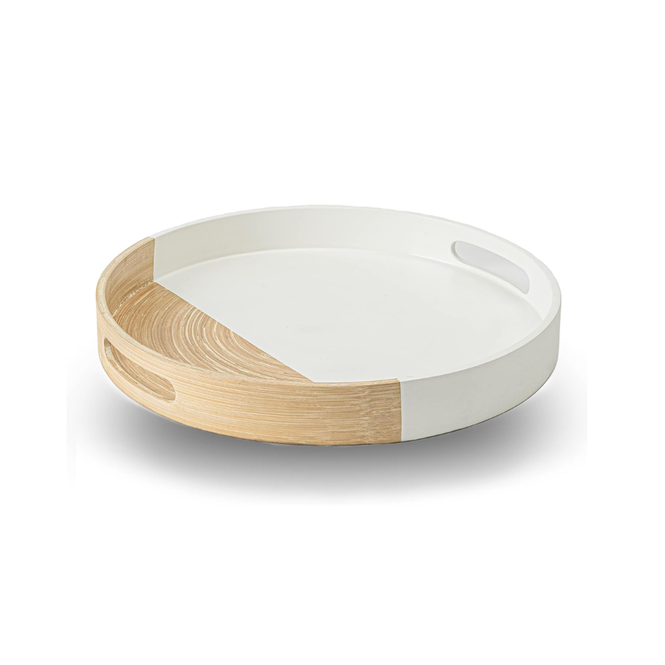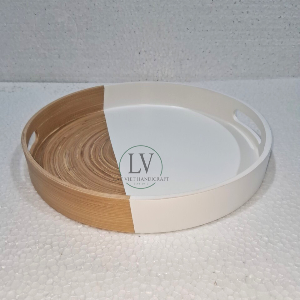 Nom du produit:Plateau Ottoman rond moderne en bambou filé avec poignées