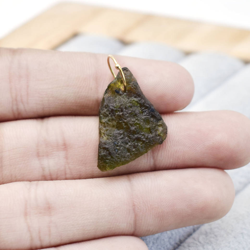 Pendentif en Moldavite naturelle brute et Tektite, authentique cristal de météorite verte, plaqué or, breloque minimaliste, bijou spirituel, cadeau