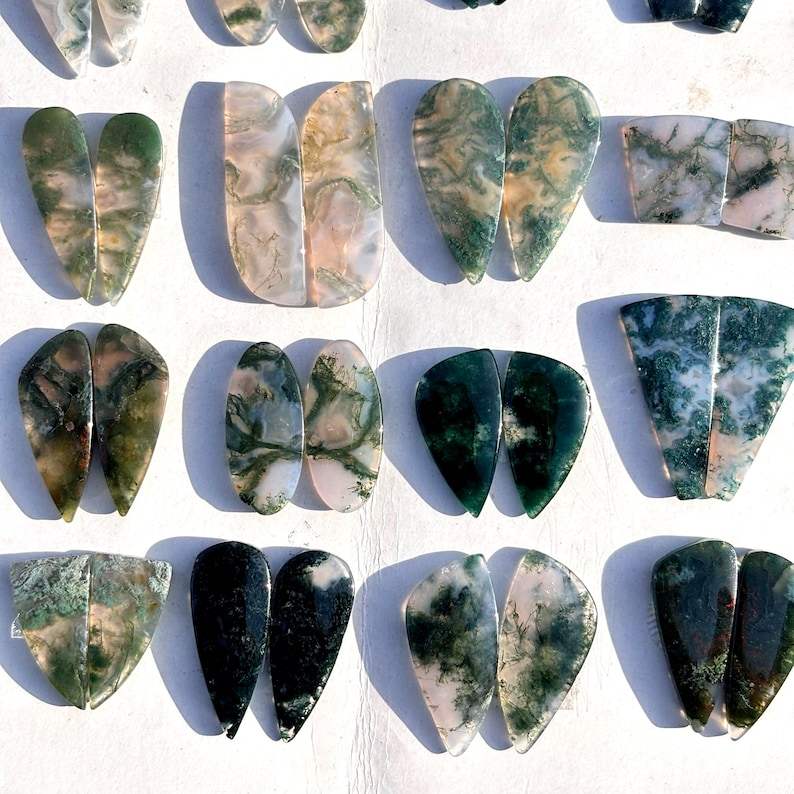 Natural Moss Agate Gemstone Pair Lot Wholesale Cabochon High Quality