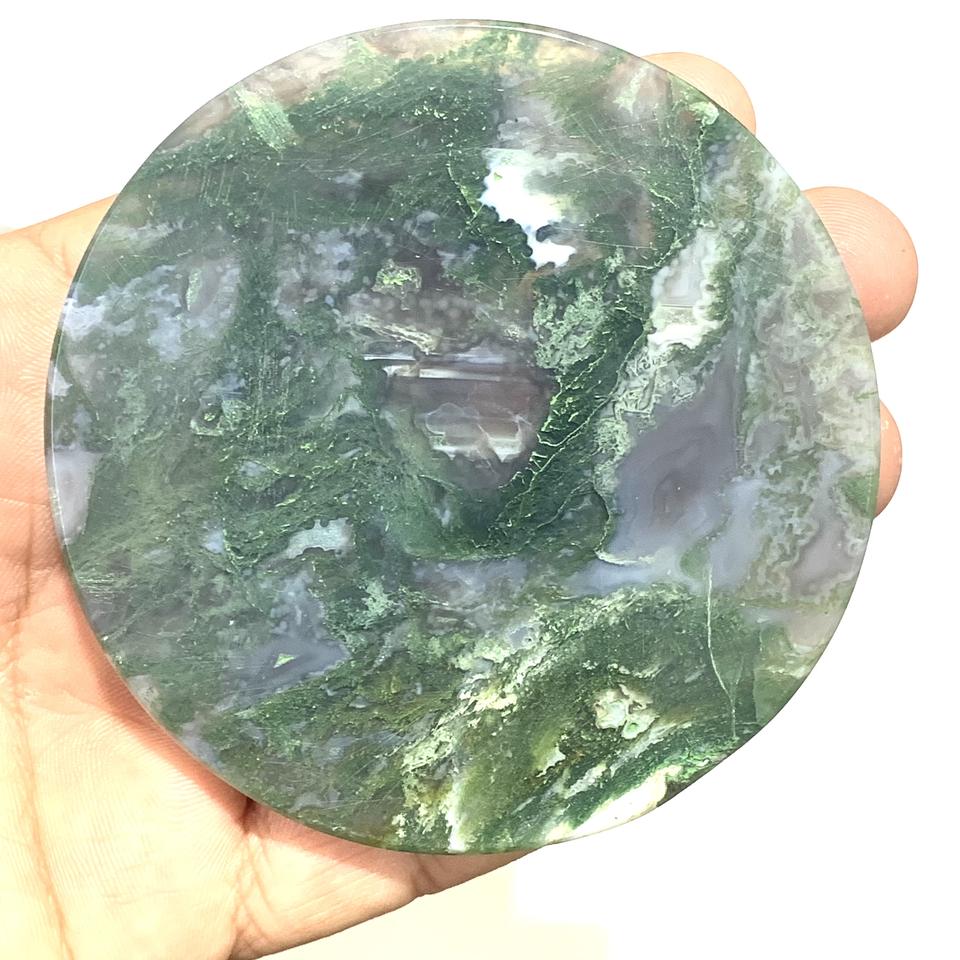 Natural Moss Agate Gemstone Round Glass Coaster Flower Style Tea Coaster for Home Decoration