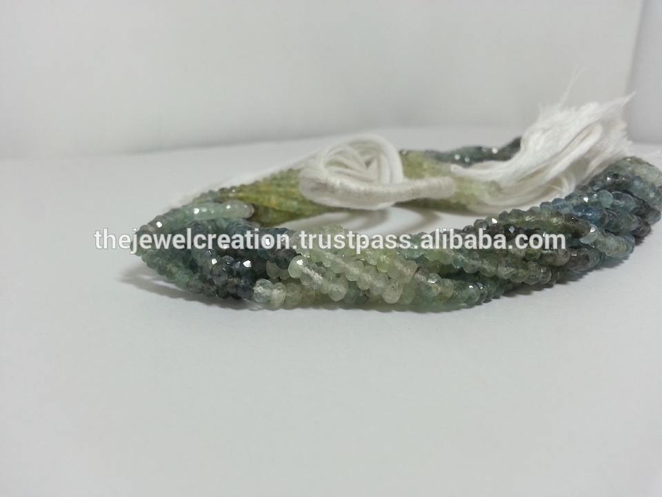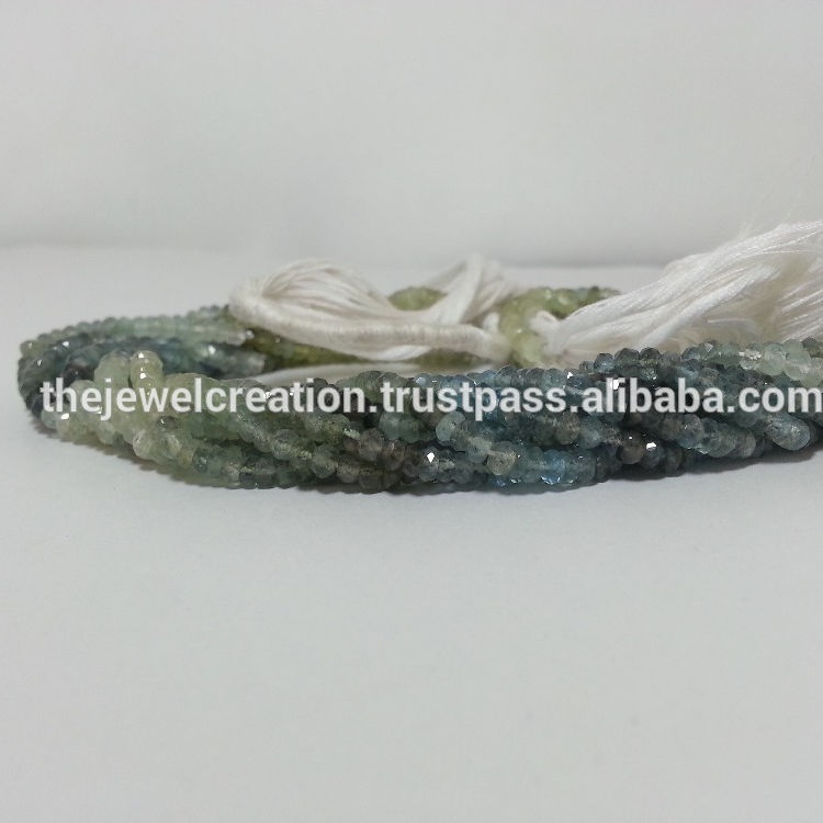 Product Name:Natural Moss Aquamarine Shaded Faceted Rondelle Gemstone Beads Strand